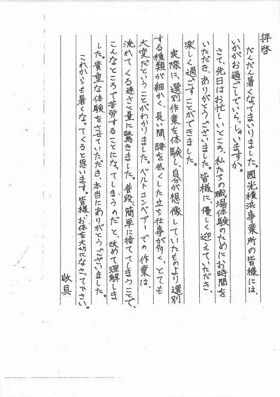 熊谷事業所にて職場体験学習受入