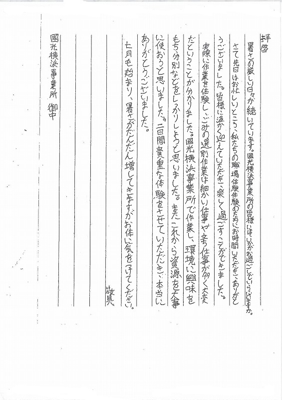 職場体験学習受入