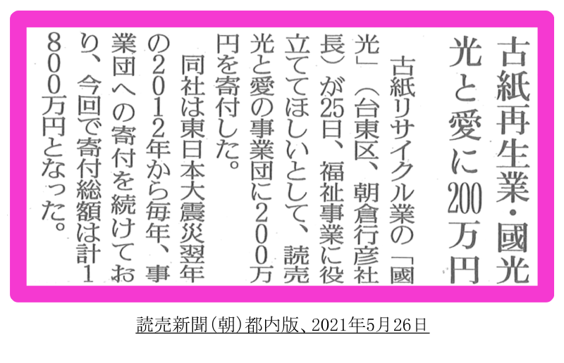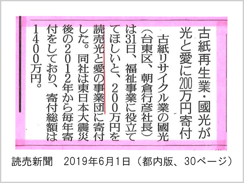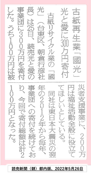 読売光と愛の事業団への寄付