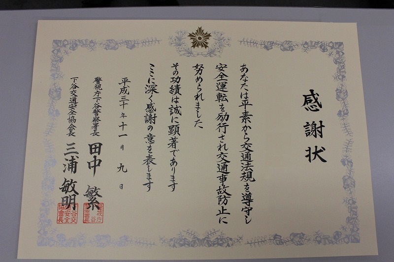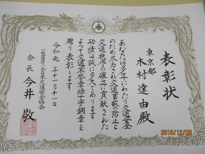 交通栄誉章「緑十字銅賞」表彰