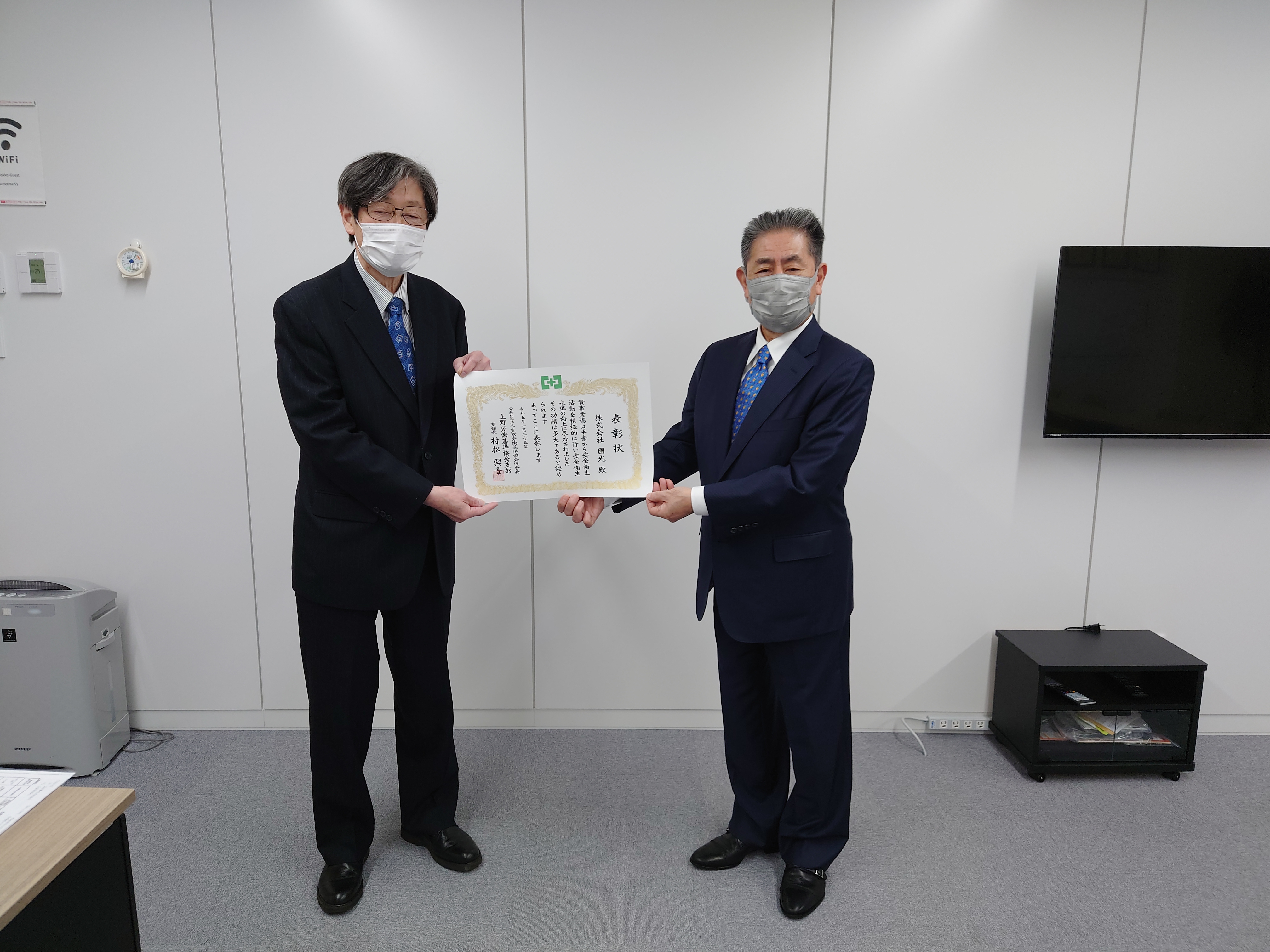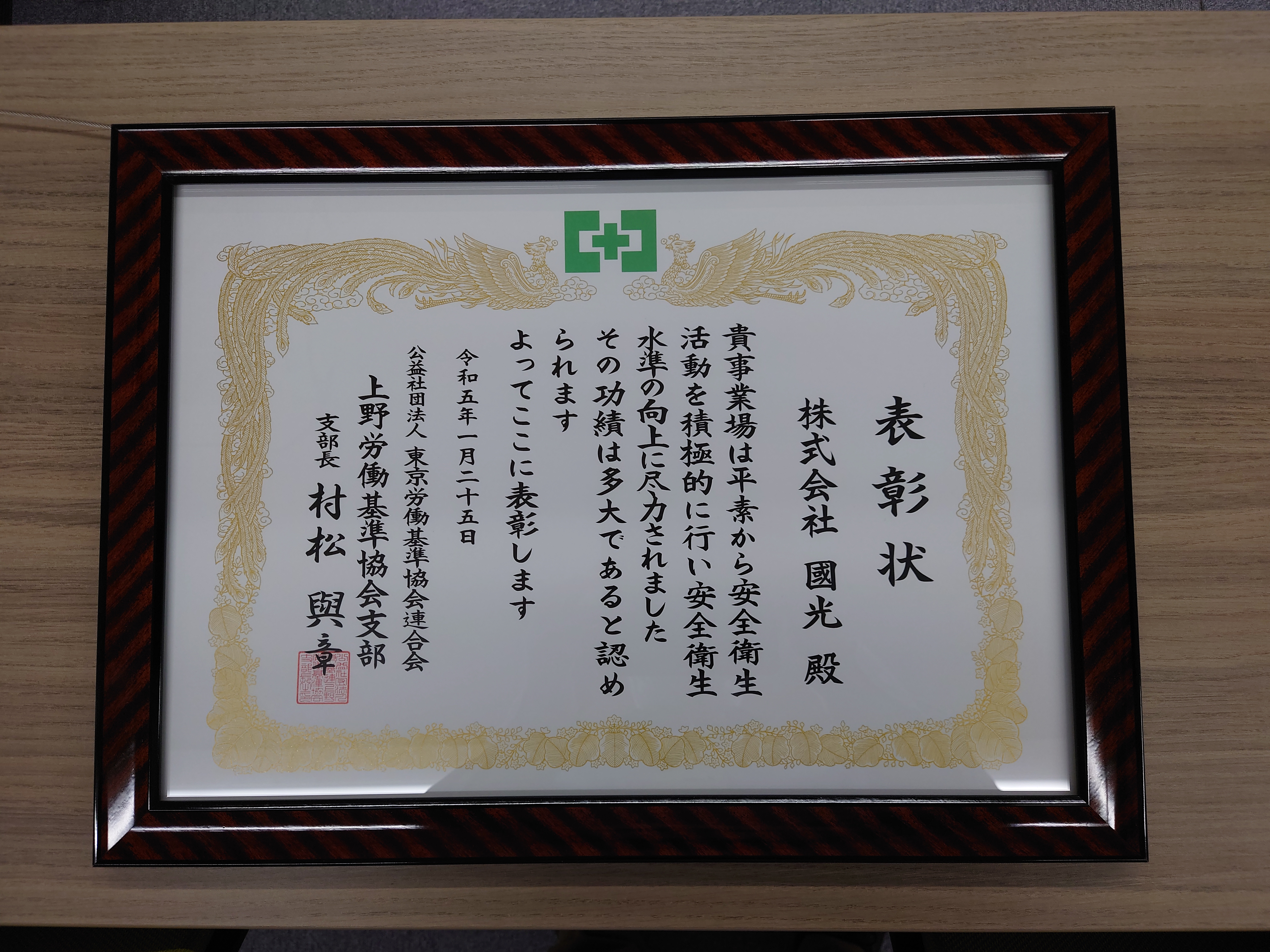 4月16日 東京上野税務署より優良申告法人の表敬を受け、表敬状を頂戴しました。