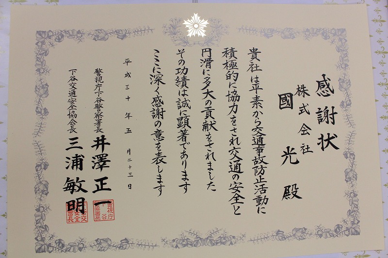 交通安全優良事業所表彰