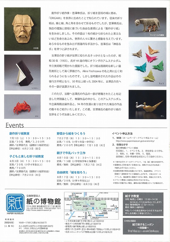 9月3日まで開催しておりますので、この夏、吉澤章氏の創作折り紙の世界を楽しみに行かれてはいかがでしょうか。