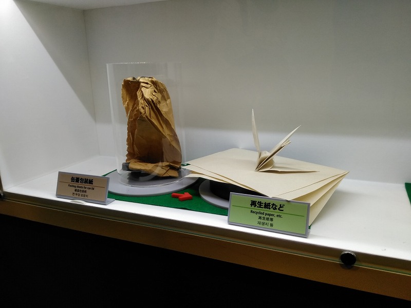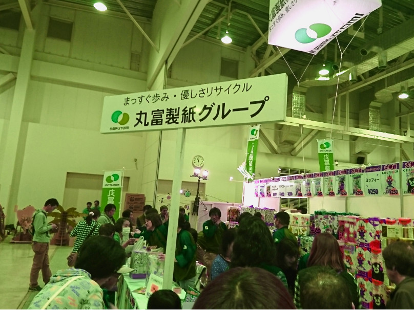メ−カ−ブ−ス・商品開発ブ−ス等に分かれており、直に商品に触り説明を聞く事が出来ました。トイレットペ−パ−では長尺の商品で、同じメ−トル換算で入っていても、ケ−スサイズが小さく、狭い場所でも保管出来るように工夫がされている商品が増えていました。また、新規事業の非常食についても、多くの商品が並んでいました。